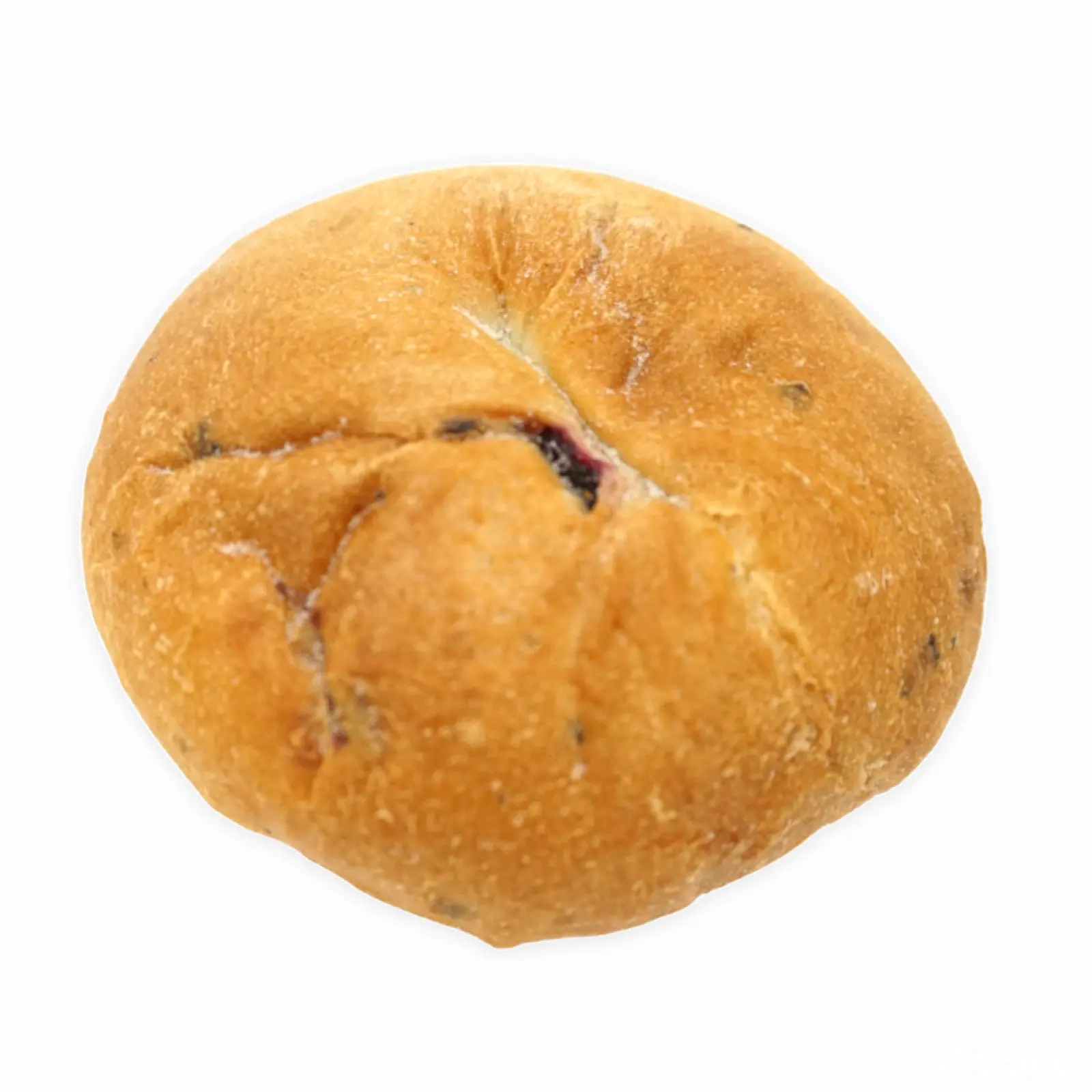 ベーグル(アメリカ製造)(小麦粉、砂糖:ブルーベリー、イースト、小麦グルテン、食塩・クランベリー、モルトパウダー、大麦麦芽粉、濃縮ぶどう果汁、濃縮ブルーベリー果汁、植物油)/V.C、(一部に小麦を含む)
