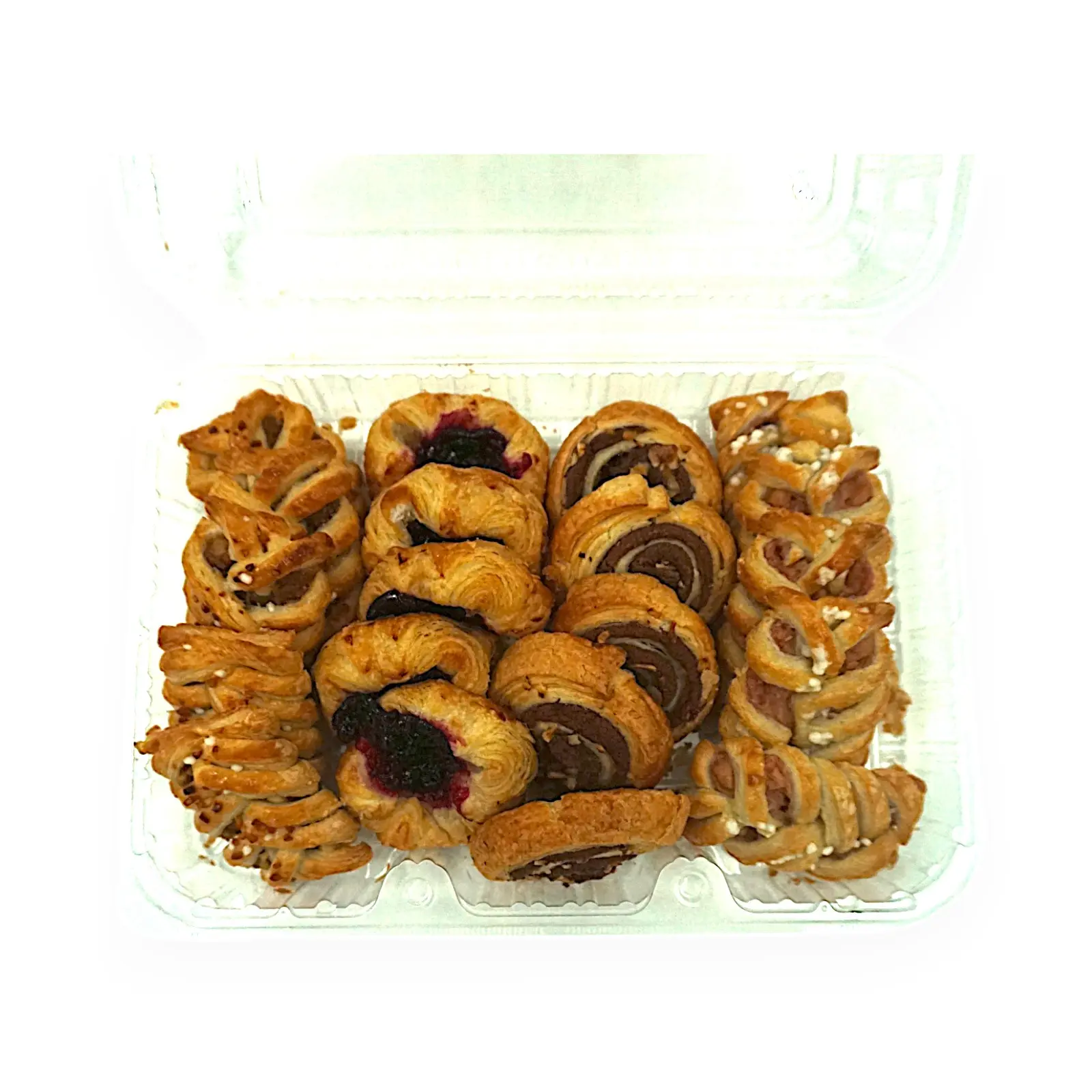 | 原材料名 | カシス(デンマーク製造)(小麦粉、マーガリン、砂糖、黒スグリ、その他)、ヌガーナッツ(デンマーク製造)(小麦粉、マーガリン、砂糖、ヘーゼルナッツ、その他)、アップル(小麦粉、マーガリン、りんご、砂糖、その他)、ストロベリークリームチーズ(小麦粉、マーガリン、イチゴ、砂糖、クリームチーズ、その他)/粘料(加工デンプン、ペクチン、アルギン酸Na、寒天)、乳化剤、香料、pH調整剤、乳酸Ca、酵素、V.C、(一部に小麦・卵・乳成分・アーモンド・りんごを含む) |