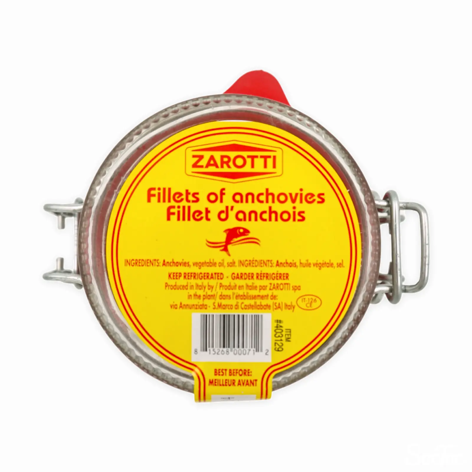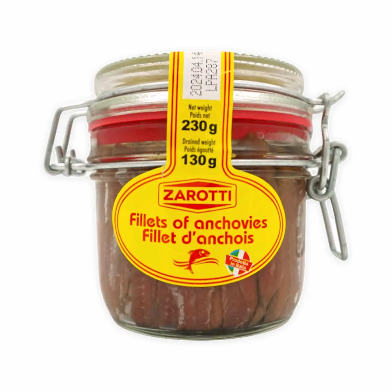 ひまわり油に漬けられた、瓶入りのアンチョビフィレ230gです。イワシの小骨はそのまま食べられる状態になっています。パスタやカナッペ、ジャガイモとソテーなど、幅広くお使いいただけます。