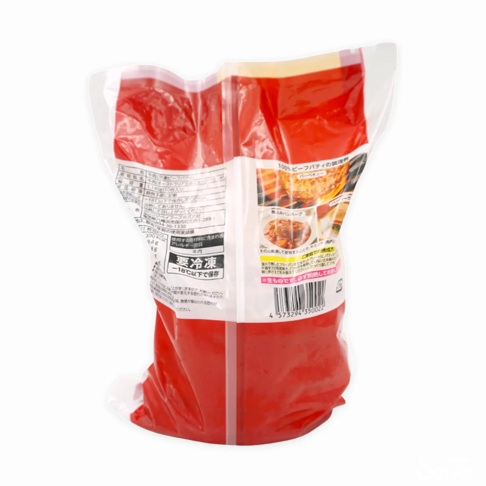 牛肉100%の冷凍ハンバーグパティが10枚入ったセットです。パティ1枚あたり114gです。ハンバーガーの他、BBQや煮込み料理のハンバーグトッピングなどにお使いいただけます。