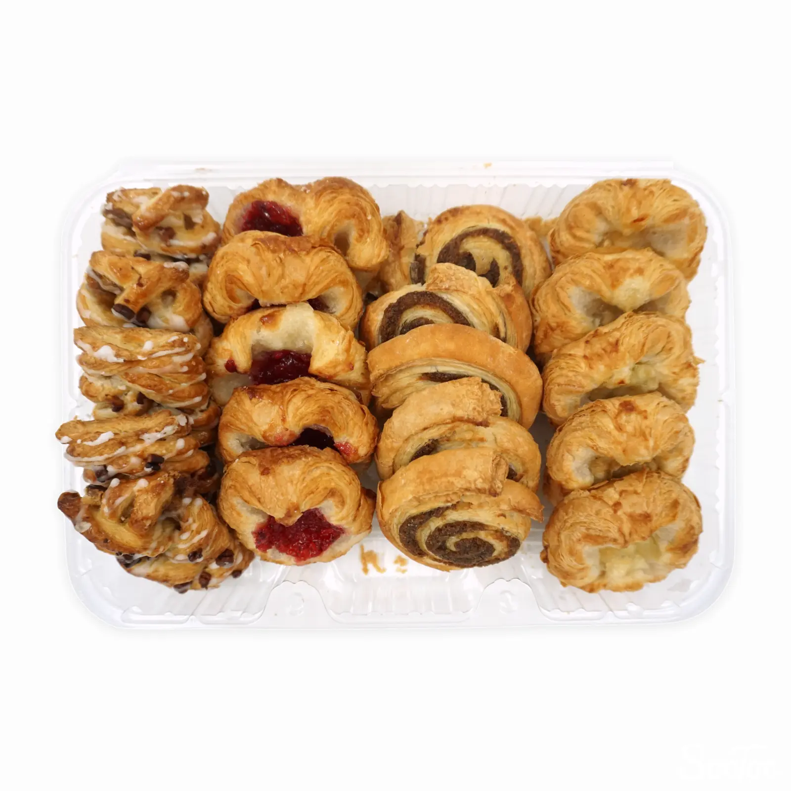 ベーカリーコーナーより、ミニデニッシュのバラエテイセットです。シナモン、アップル、メープルピーカン、ストロベリーの4種類がそれぞれ5つずつ、計20個入っています。
