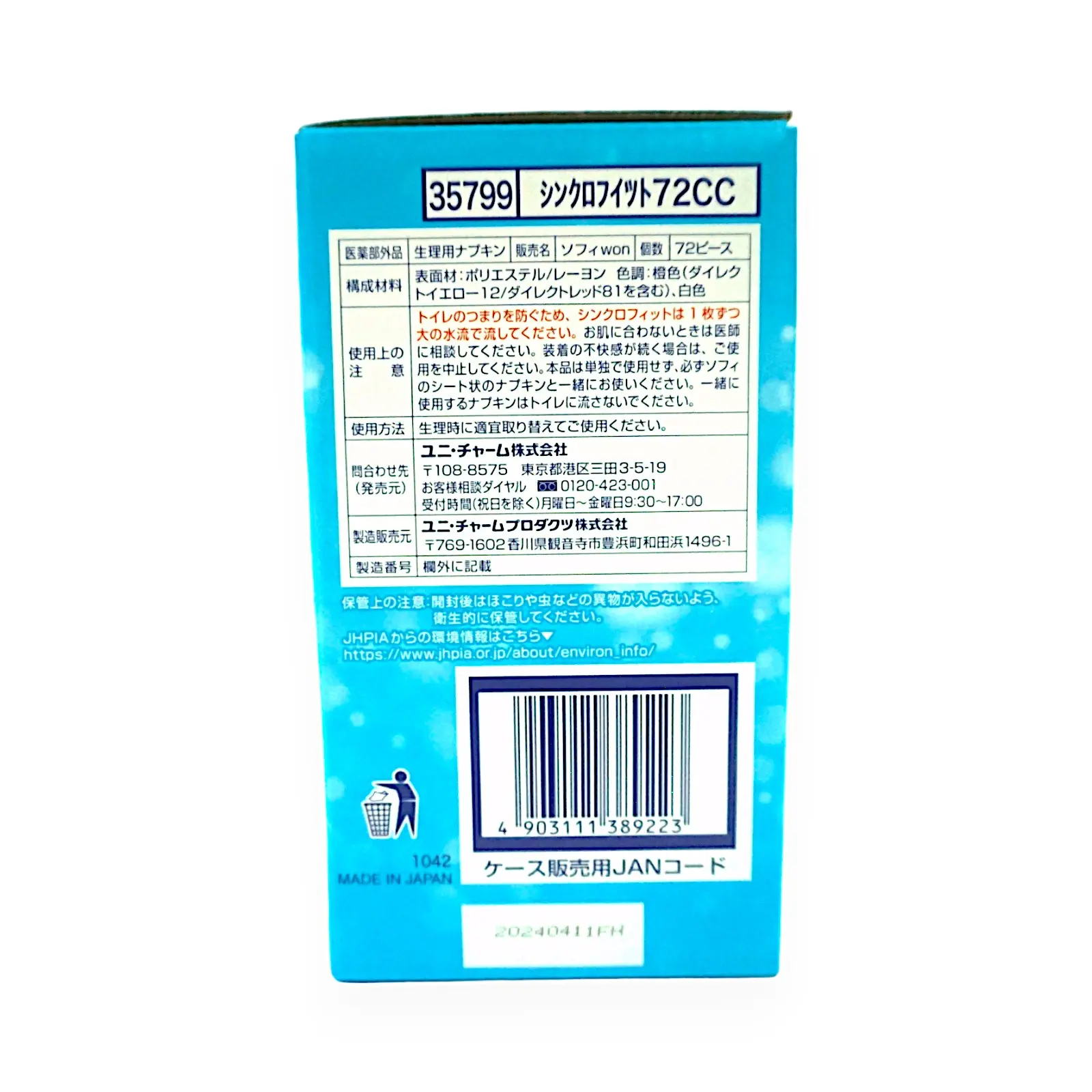 ソフィ シンクロフィット多い日の昼用72ピース入りです。(生理用品ナプキン併用タイプ)