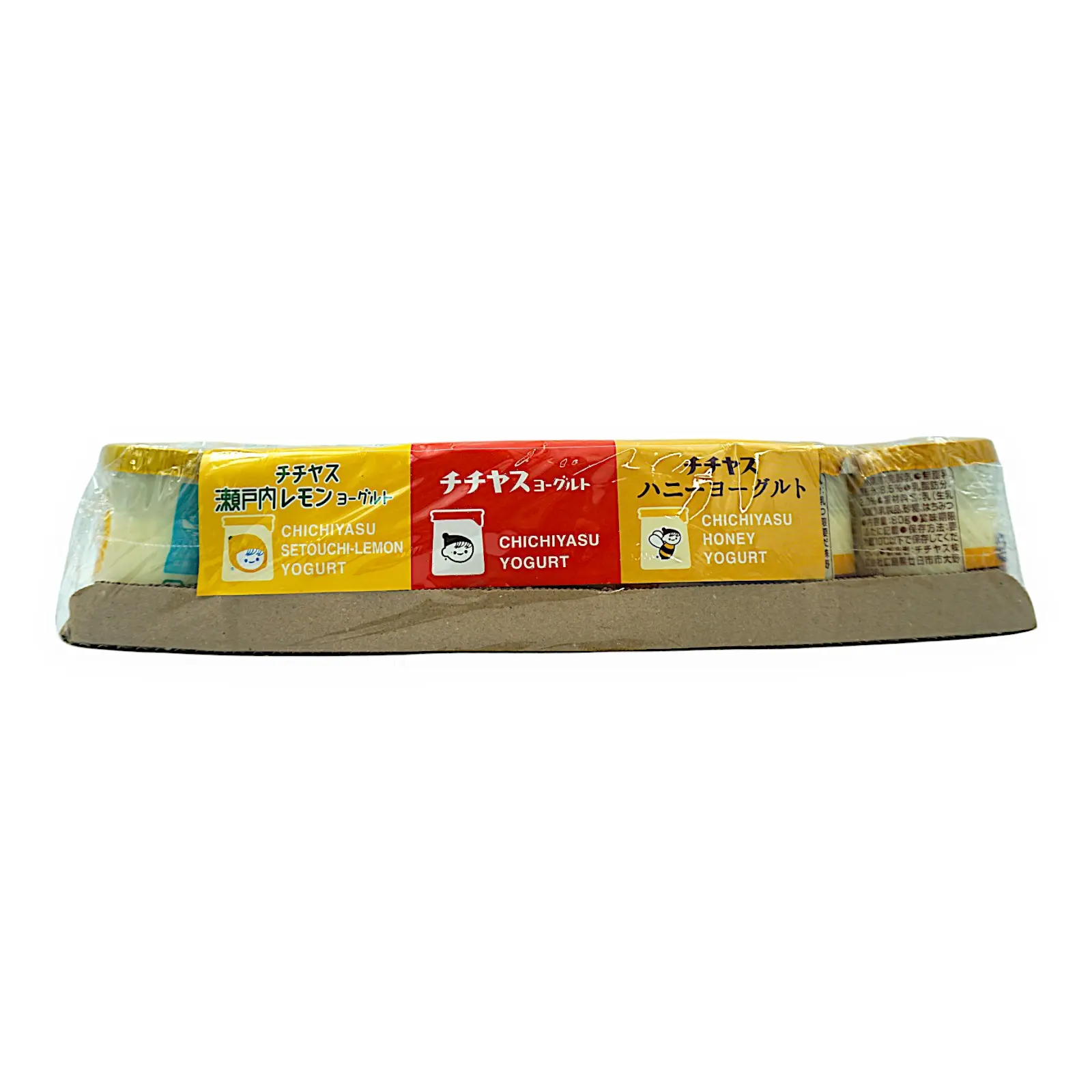 | 栄養成分表示 | 【プレーン】1個(80g)あたり:エネルギー73kcal、たんぱく質2.7g、脂質1.8g、炭水化物11.3g−糖質11.3g−糖類10.7g−食物繊維0g、食塩相当量0.09g、カルシウム90mg 【ハニー】1個(80g)あたり:エネルギー67kcal、たんぱく質2.6g、脂質1.7g、炭水化物10.2g、食塩相当量0.08g、カルシウム85mg 【瀬戸内みかん】1個(80g)あたり:エネルギー68kcal、たんぱく質2.6g、脂質1.8g、炭水化物10.5g、食塩相当量0.10g、カルシウム86mg |