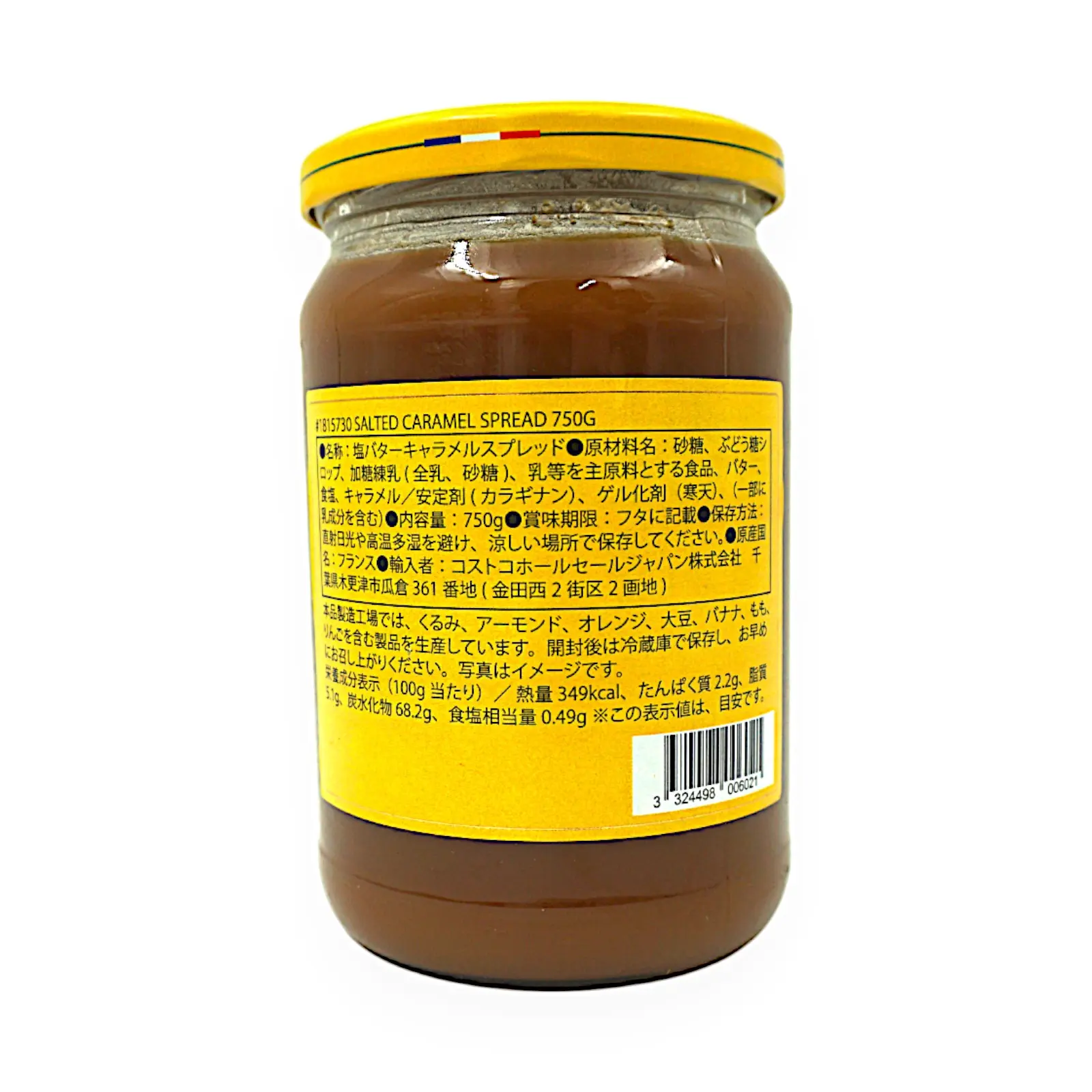 フランス産の塩バターキャラメルスプレッドです。豊かなコクを感じるバターとなめらかなキャラメルに、ほんのりと塩気が効いた絶妙なバランスが特徴です。パンやパンケーキ、クレープやワッフル、アイスクリームやデザートのトッピングとしてお使いください。