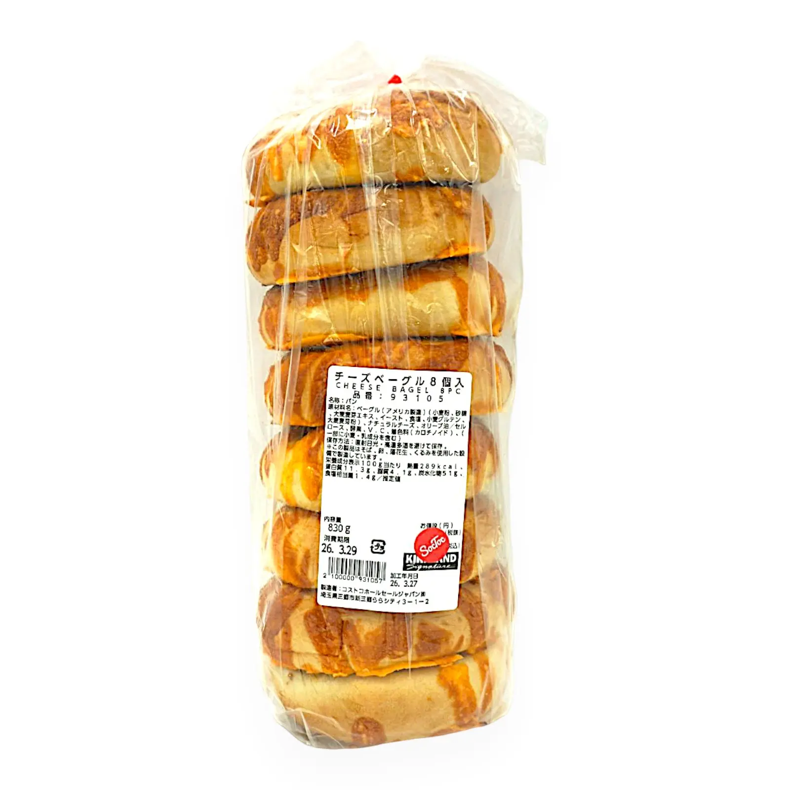 コストコのベーグルシリーズ、チーズフレーバーです。一袋に8個のベーグルが詰められています。シュレッドチーズがたっぷりと散らされており、甘くないお食事向きのベーグルとなっています。