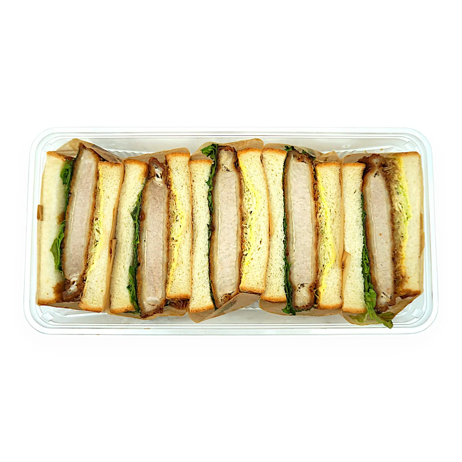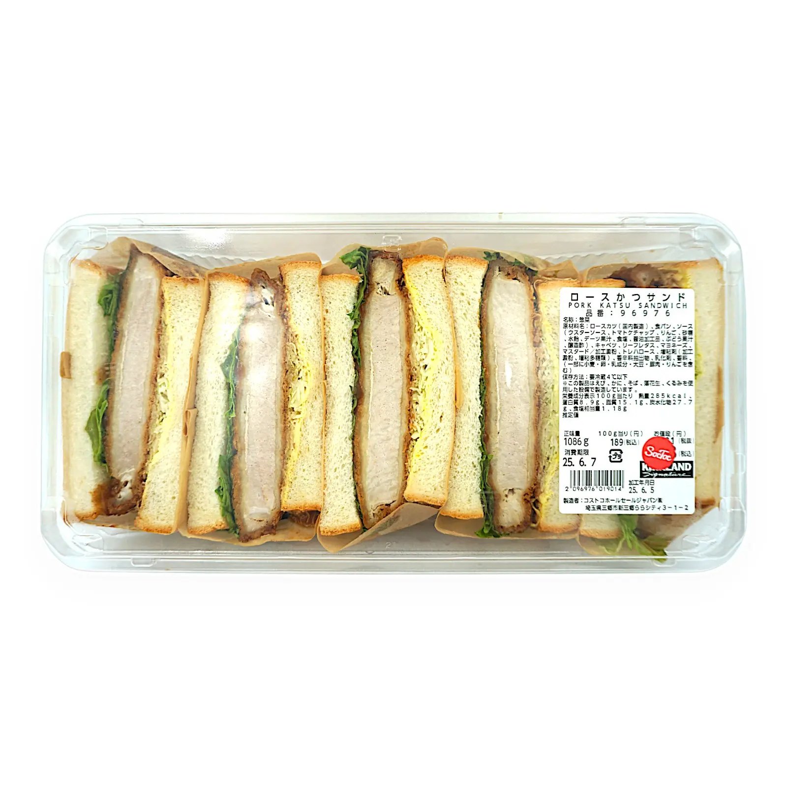 | 原材料名 | ロースカツ(国内製造)、食パン、ソース(ウスターソース、トマトケチャップ、りんご、砂糖、水飴、デーツ果汁、食塩、醤油加工品、ぶどう果汁、醸造酢)、キャベツ、リーフレタス、マヨネーズ、マスタード/加工澱粉、トレハロース、増粘剤(加工澱粉、増粘多糖類)、香辛料抽出物、乳化剤、香料、(一部に小麦・卵・乳成分・大豆・豚肉・りんごを含む) |